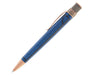 To achieve a denim-like texture, Retro51 acid-etched the pen's tapered metal barrel, detailing pockets and stitching that you can feel. Then, they "dyed" the barrel a classic, deep blue jeans color. Stonewashed copper clip, knurled twist top, and accents complete the look. A backpocket illustration sits on the top disc.