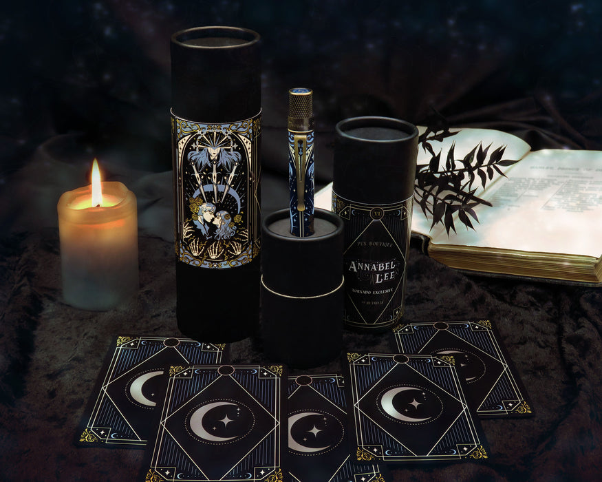 Step into the haunting beauty of eternal love with Pen Boutique’s exclusive Retro 51 Tornado design, inspired by Edgar Allan Poe’s gothic masterpiece Annabel Lee and the powerful symbolism of The Lovers tarot card.